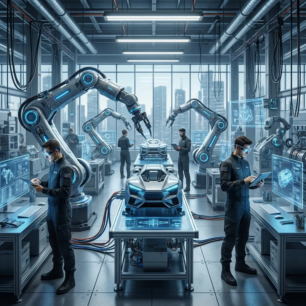 - Robot công nghiệp: Cánh tay robot trong nhà máy lắp ráp ô tô, điện tử.